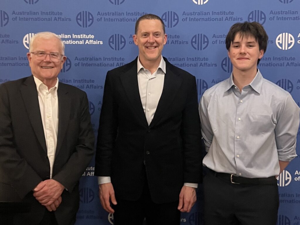 James Laurenceson (centre), AIIA NSW president Ian Lincoln (left) and AIIA NSW intern Lachie Doyle (right)